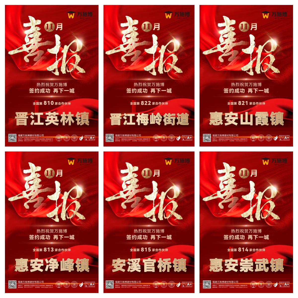 2025年11月,萬施博招商在泉州市場迎來爆發(fā)式增長:單月簽約9家新代理商,覆蓋晉江英林鎮(zhèn)、梅嶺街道、惠安凈峰鎮(zhèn)、崇武鎮(zhèn)、山霞鎮(zhèn)、南安水頭鎮(zhèn)、安溪官橋鎮(zhèn)、龍涓鎮(zhèn)以及石獅市等8鎮(zhèn)1市。